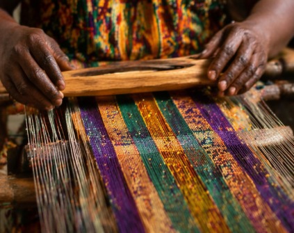 Vibrant kente-inspired weaves carrying centuries of heritage